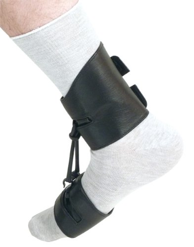 - Both ankle strap and foot band are made of durable soft leather. Each part adjusts using Velcro closures.