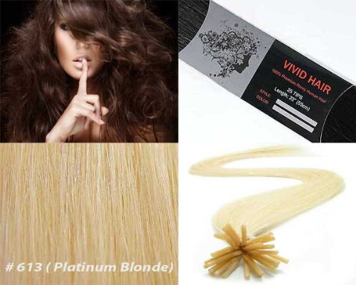 Vivid Hair 200 Strands Micro Ring Links Locks Beads Keratin Stick I Tip Straight Human Hair Extensions Color 613 Platinum Blonde Rating ,