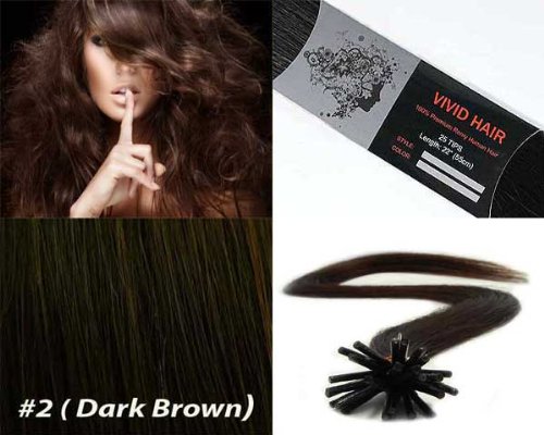 Vivid Hair 200 Strands Micro Ring Links Locks Beads Straight Keratin Stick I Tip Human Hair Extensions Color #2 Dark Brown Rating ,